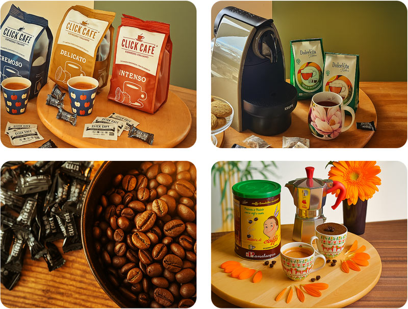 - Caffè in grani, cialde e capsule a marchio Click Café e marchi partners.
